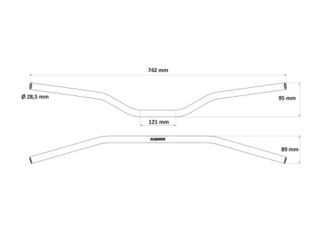 A lightweight and rigid CNC-machined aluminum handlebar featuring a 28.5 mm variable cross-section. The handlebar tapers from a 28.5 mm central section to standard 22 mm grip ends, enhancing comfort and control. Ideal for motocross, enduro, supermoto, and street setups.
